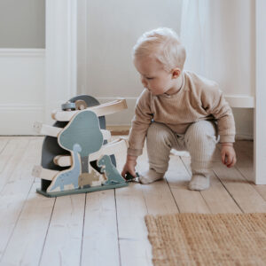 This playful teddy-themed gift set includes three beautifully designed wooden toys: a car, a shape puzzle, and a bead maze. With its clean color palette and gentle expression, the set works equally well as nursery decor or for active play. A perfect gift that inspires creativity and supports a child’s development through play.