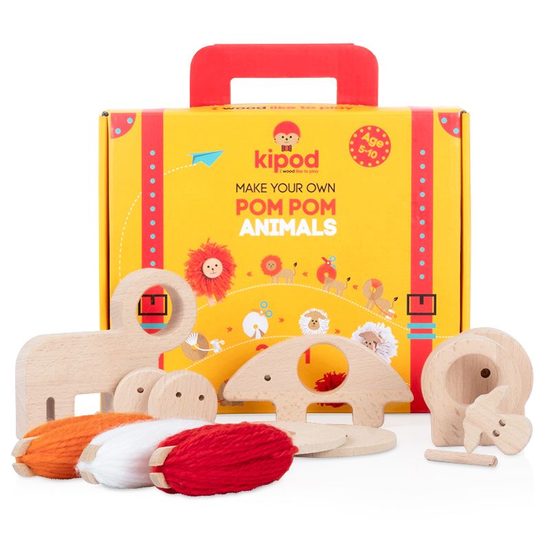 Assemble a uniquely designed fun-filled Animals: A great combination of the softness of the pompons with the smooth feel of high-quality wood.